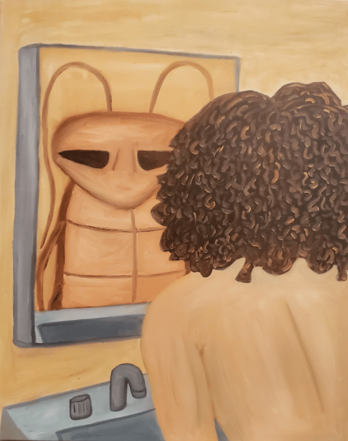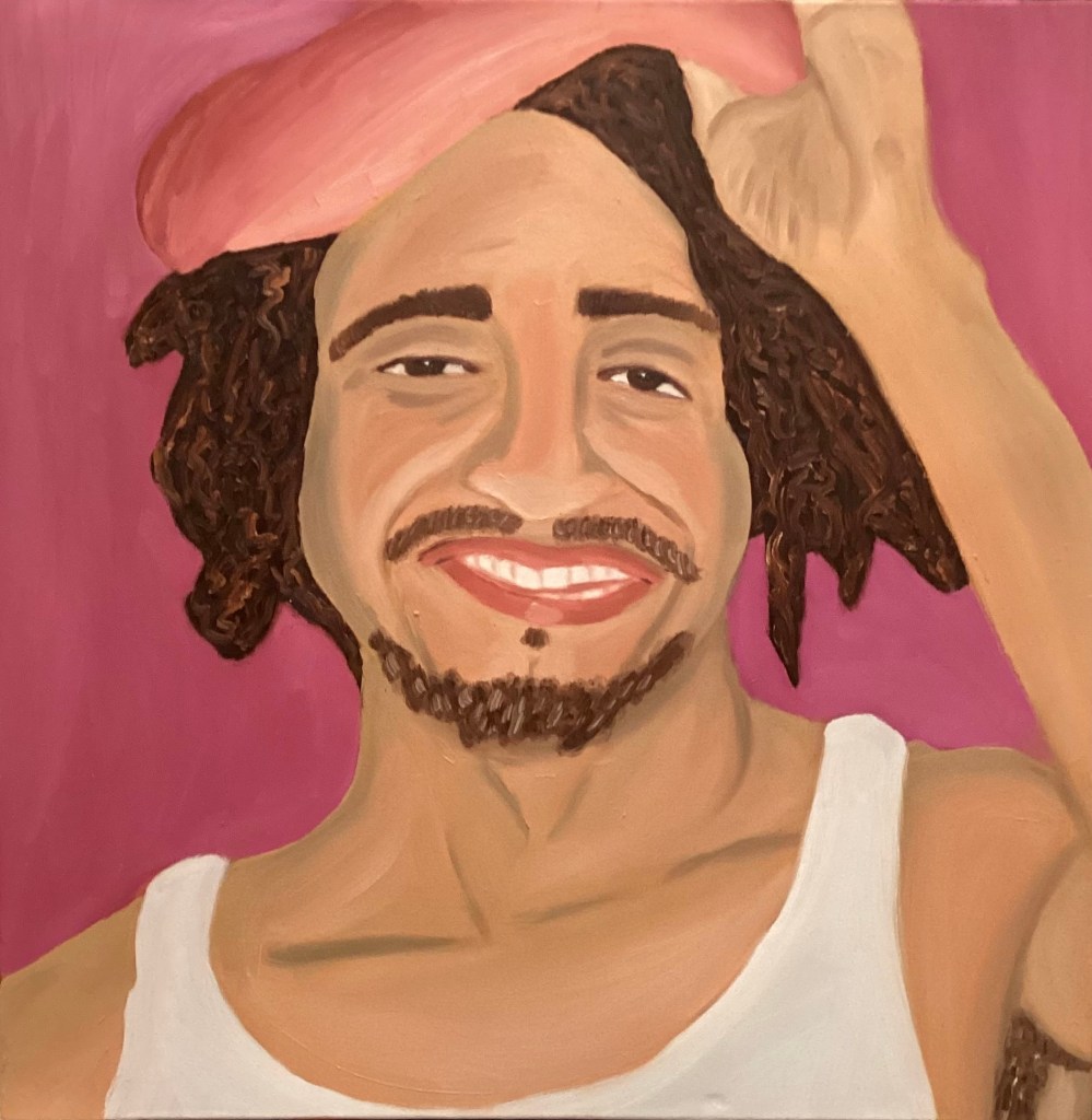 “Good Morning Roomie” (2023). Oil on 20″ x 24″ Canvas