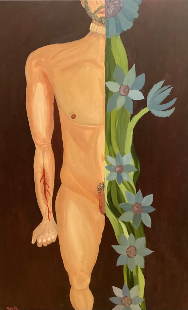 “A Latino Sunflower” (2022). Oil on 40″ x 60″ Canvas