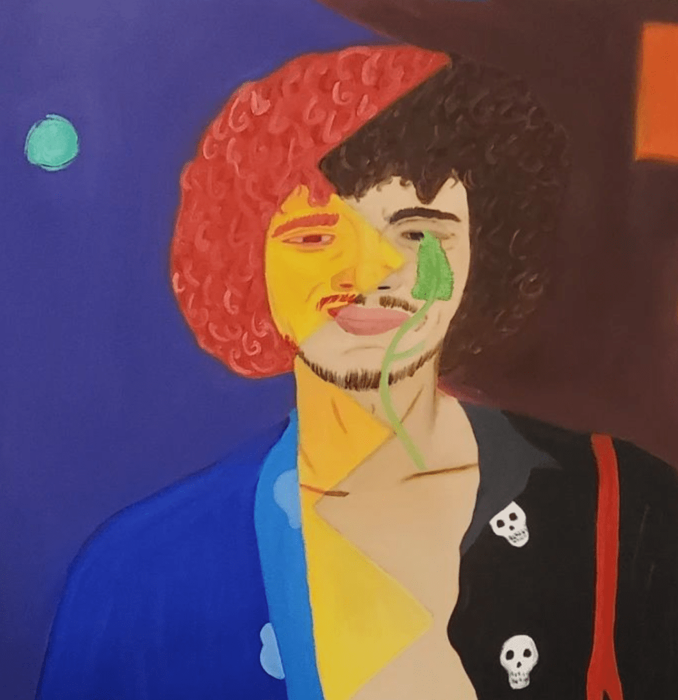 “Halloween Self-Portrait” (2023). Oil on 24″ x 24″ Canvas