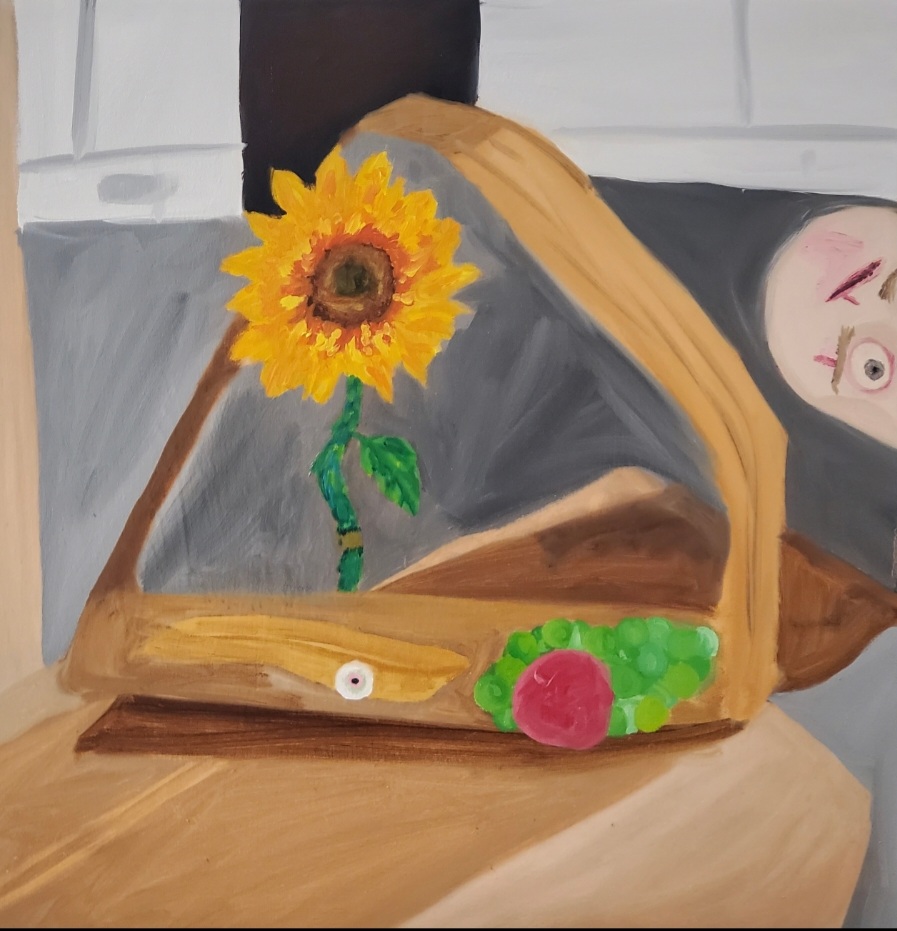 “Peek-a-boo” (2022). Oil on 30″ x 30″ Canvas