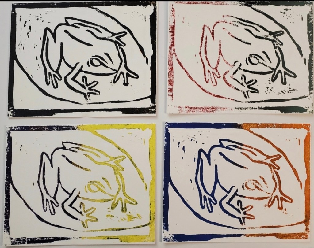 “Coquí Primaries” (2022). Block Printing Ink on 8″ x 10″ Paper